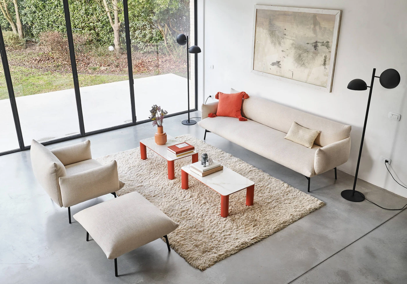 Conceputa de Studio Pastina, colectia Area combina o sedere extrem de moale cu un design esential si curat. Forma pernelor se repeta in constructia sezutului si a spatarului. Moale si primitoare, volumele sunt concepute pentru a insoti corpul intr-un mod armonios si dinamic.