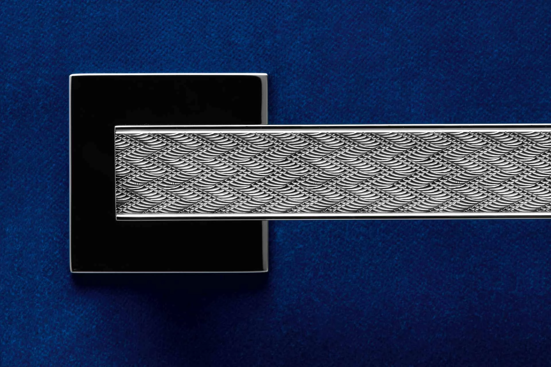 Guilloche este o tehnica de gravare decorativa care foloseste strunguri speciale. Ghidate manual, aceste masini deseneaza un model precis, complex si repetat pe suprafata metalica. Motivul Chevron in forma de spic de herringbone, aplicat bestsellerului Olivari Diana, exprima un **rafinament pretios**.