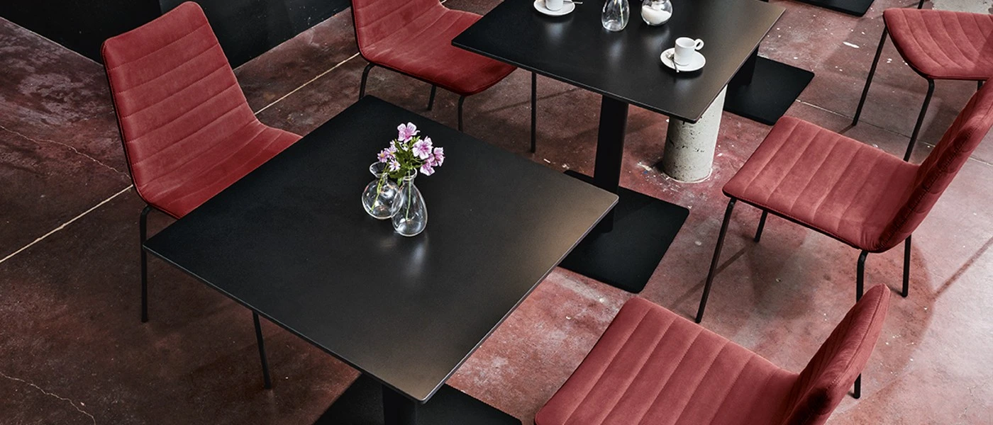 Baza bistrot Composit/2 cu baza patrata din metal. Potrivit pentru blaturi rotunde sau patrate.