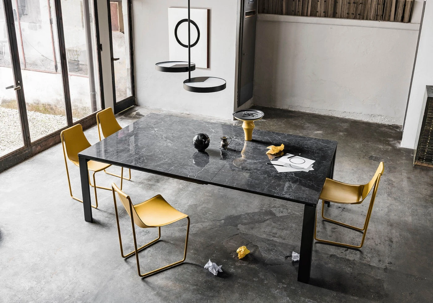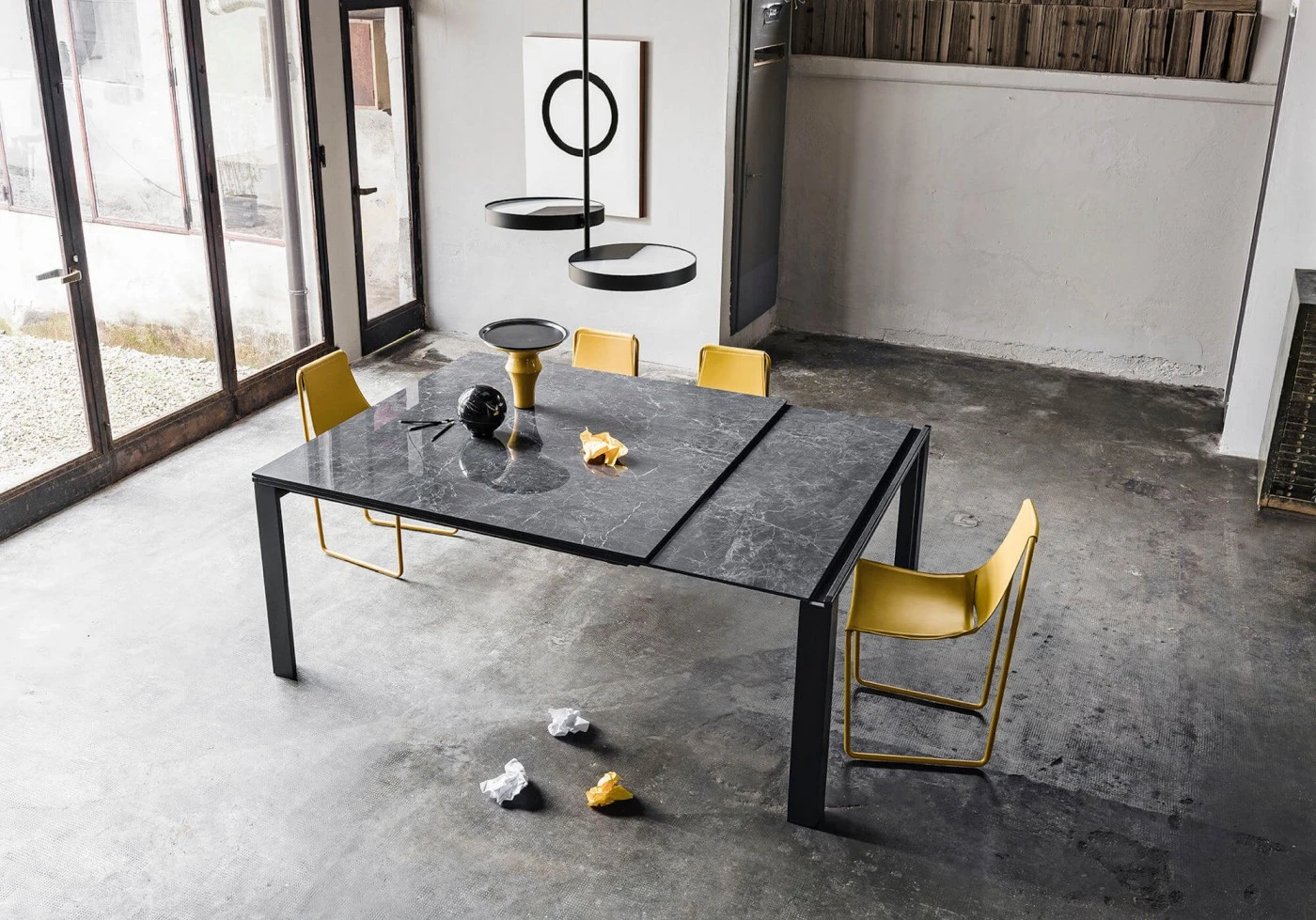 Masa extensibila Marcopolo cu baza cu patru picioare din metal lacuit.