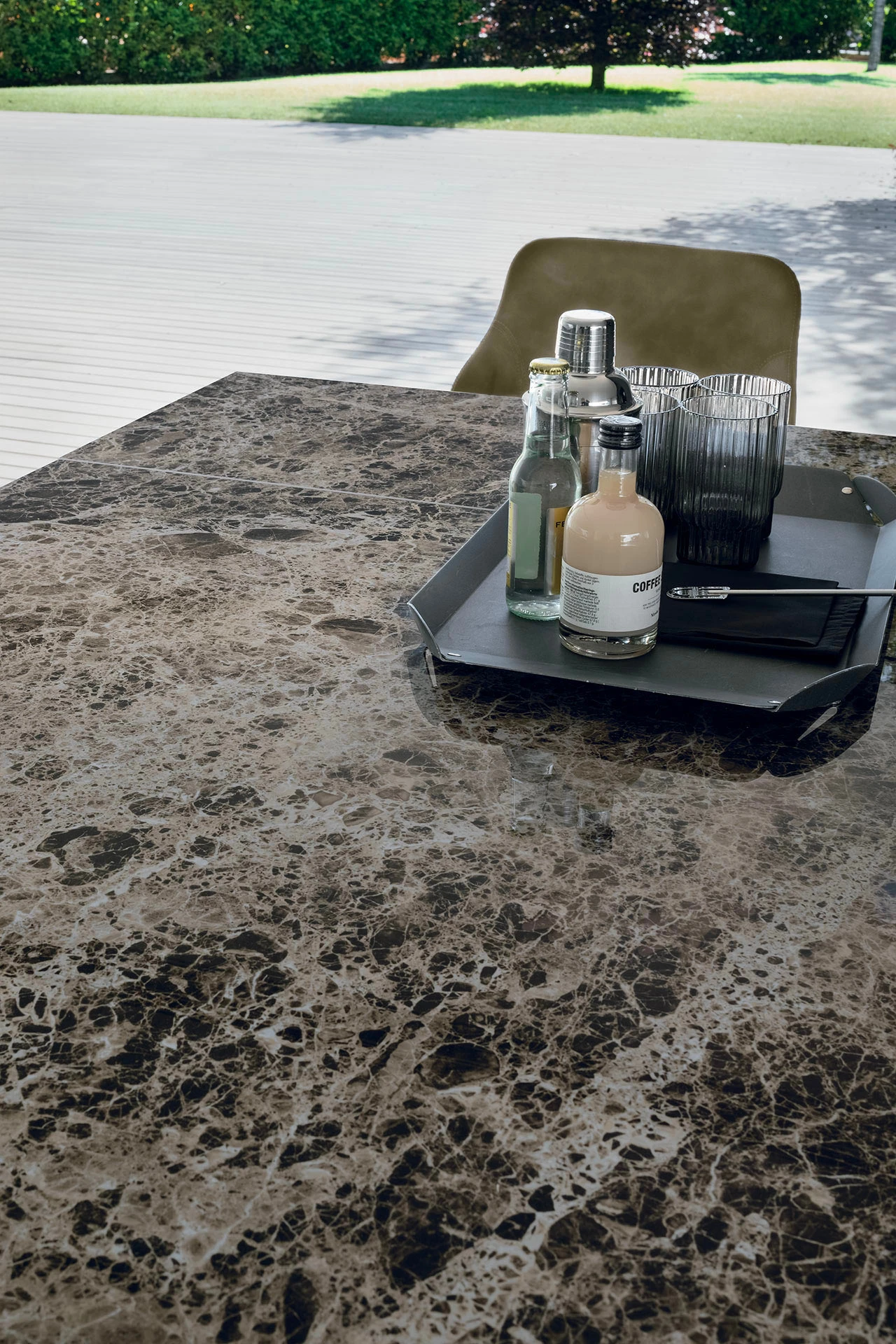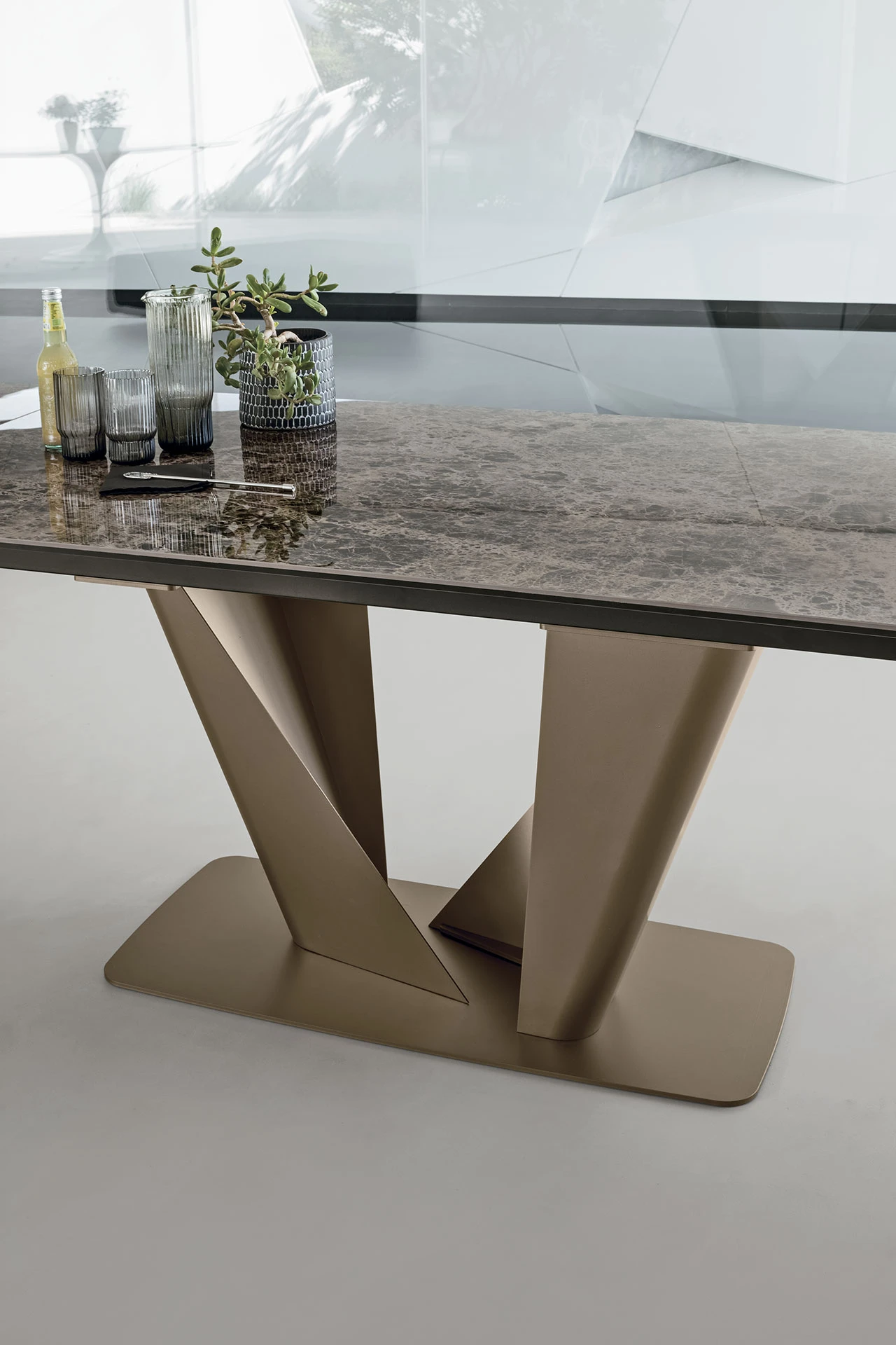 Cadru metalic culoare bronz 165. Blat ceramic Emperador lustruit finisaj 042.