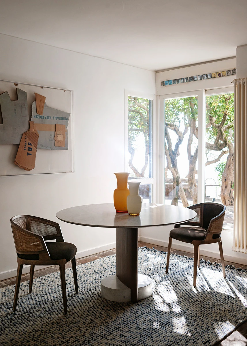 Colectia Syn investigheaza relatia dintre volume multiforme care se combina pentru a crea o piesa de mobilier unica. Aceasta familie este declinata in doua mese de dining, cu blaturi rotunde si dreptunghiulare, al caror protagonist este baza compusa dintr-un joc de forme si materiale.