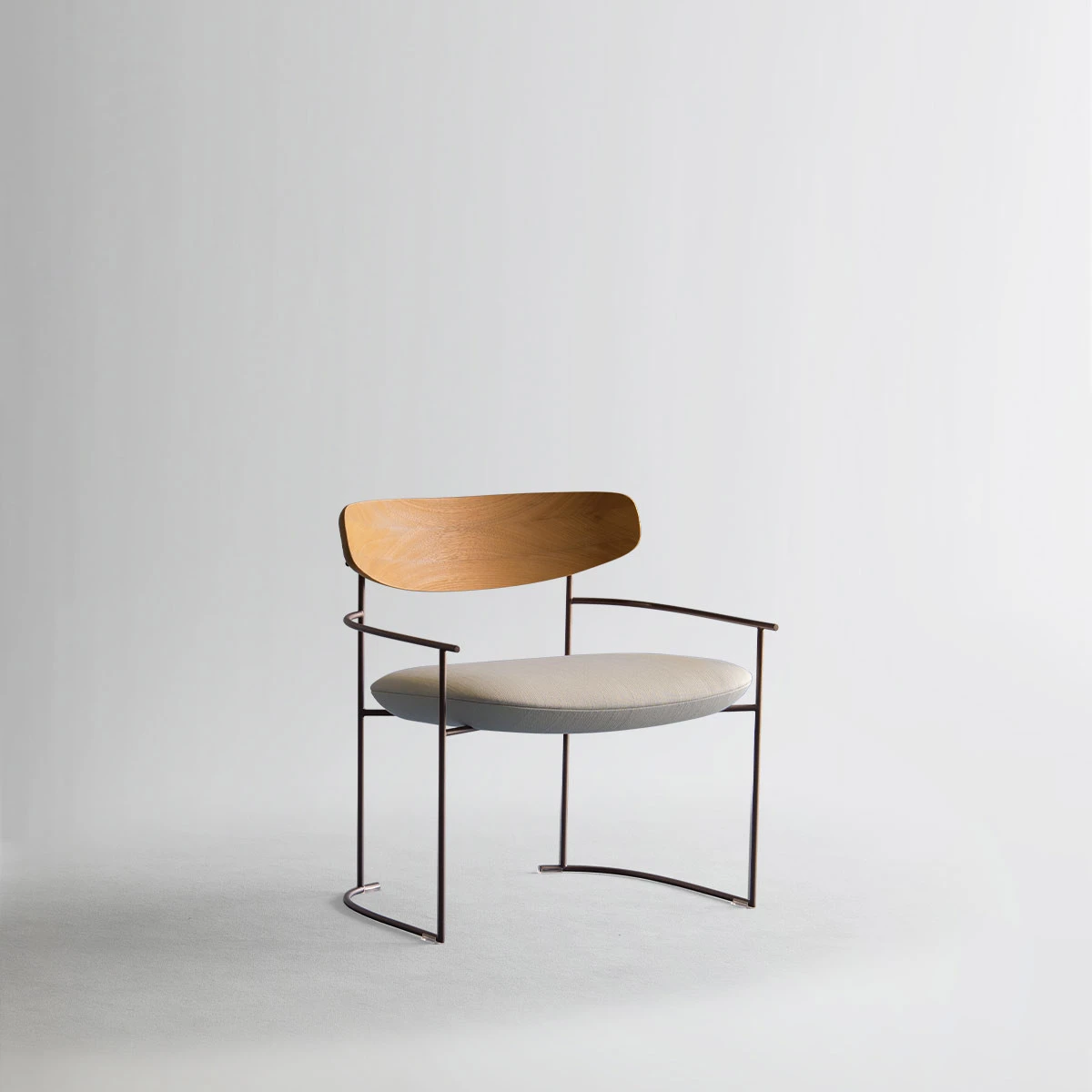 Fotoliul Keel, parte a colectiei omonime formata dintr-un scaun, un fotoliu mic si taburete, este rezultatul cercetarii relatiei dintre rigoarea geometrica si sinuozitatea organica.