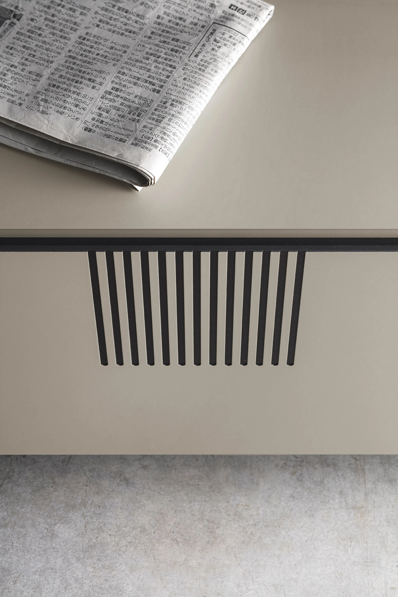 Finisaje foto / Canapea Arena, canapea Arena cu stuf, canapea cu nervuri negre. Baza metalica antracit 160. Masuta de cafea Moon.