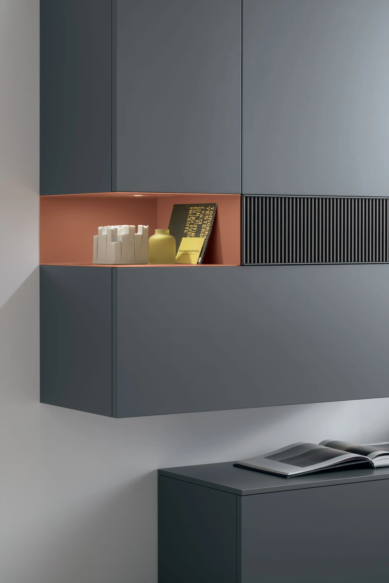 Finisaje foto / Lemn de stejar carbune si stejar carbune stufat, lac mat brom 176, metal antracit 160 si metal tabasco 171.